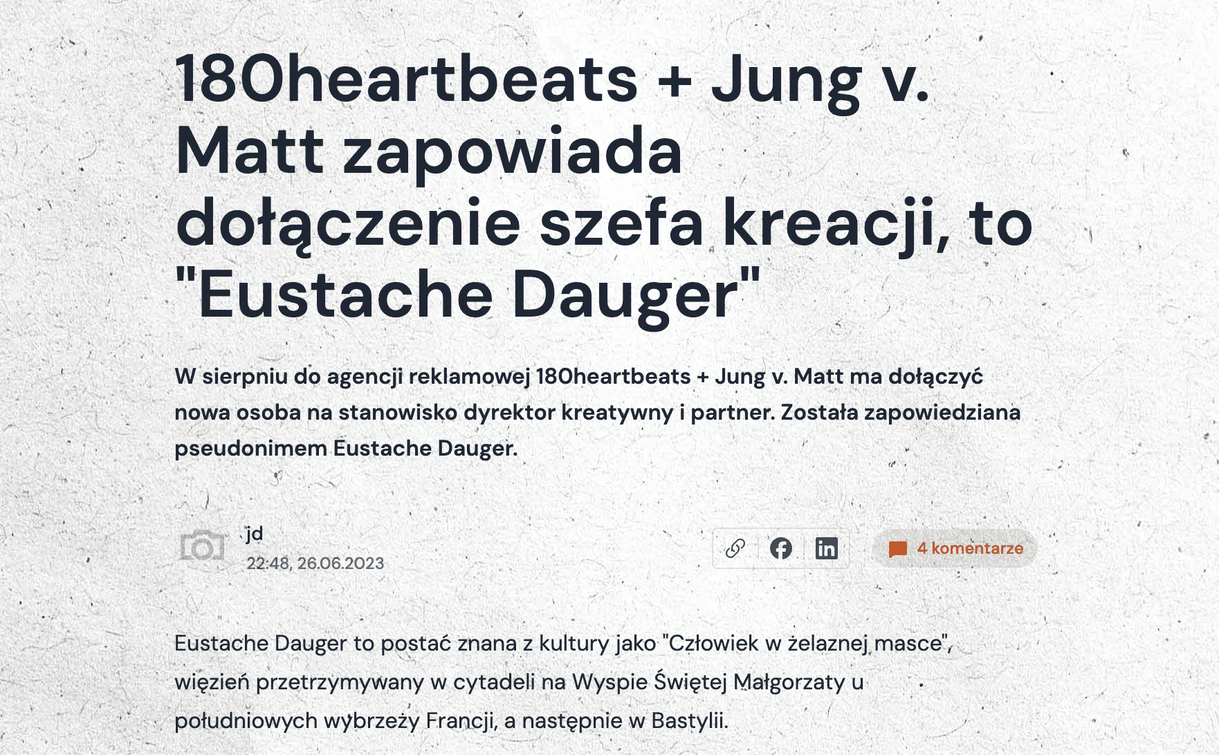 Before my identity was revealed, we orchestrated a teaser campaign under the pseudonym "Eustache Dauger," a nod to the legendary Man in the Iron Mask, which built genuine intrigue across the industry.